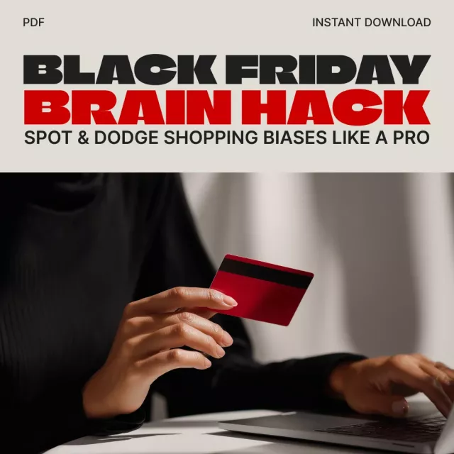 Don’t let clever marketing win this year. Download Black Friday Brain Hack: Spot & Dodge Shopping Biases Like a Pro today and learn how to recognize and avoid common shopping biases with ease. Stay savvy, stress-free, and one step ahead of every sale.